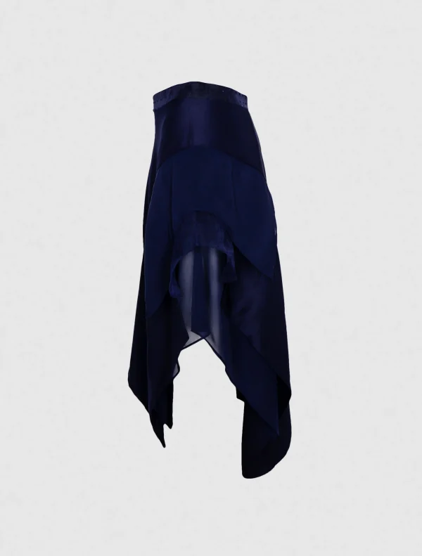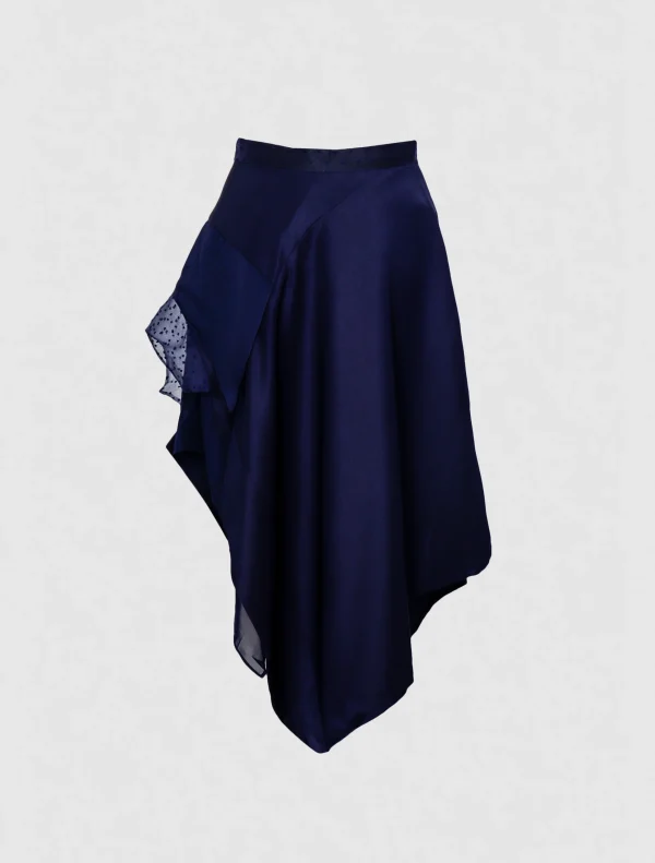 An asymmetric line skirt. which can be used for a formal occasion or casual. have a wave design on the left side.