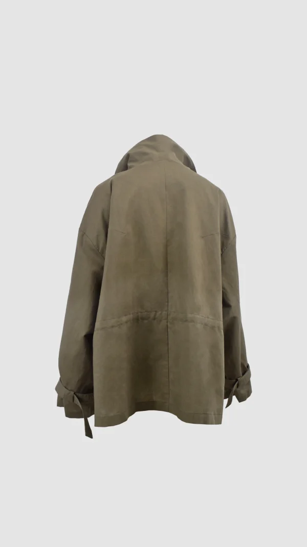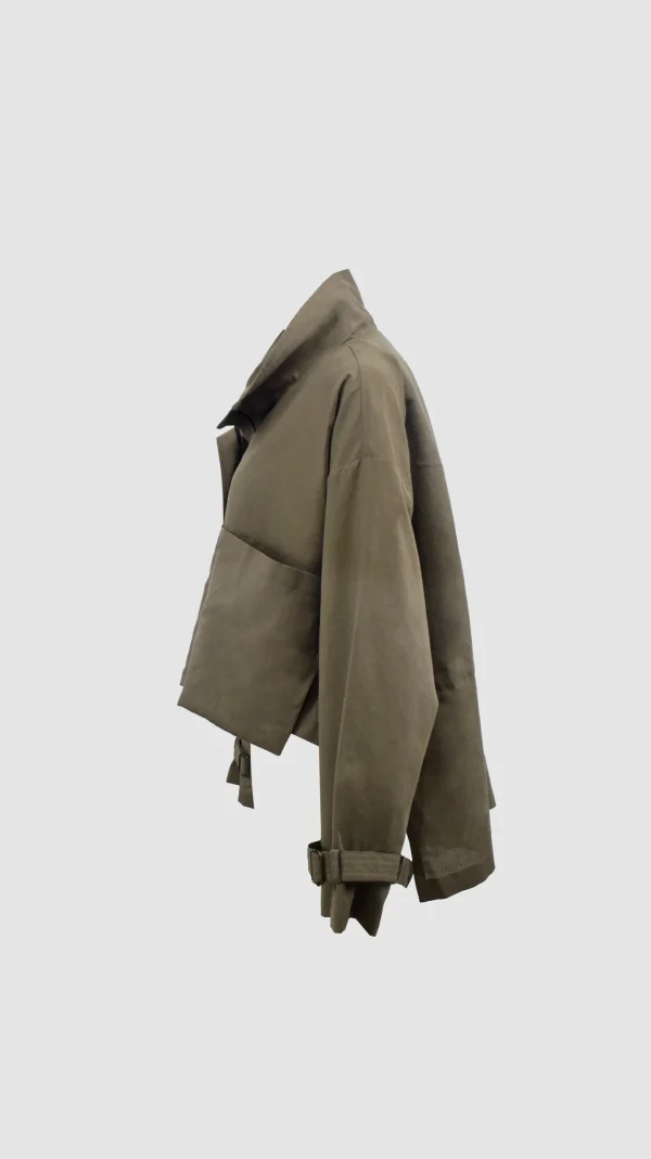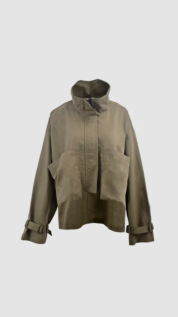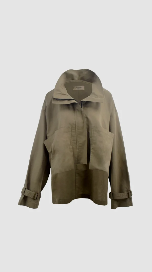 The olive green jacket, crafted from a premium cotton and linen blend, offers a perfect balance of comfort and style. Ideal for layering, this jacket is a must-have addition to your wardrobe.
